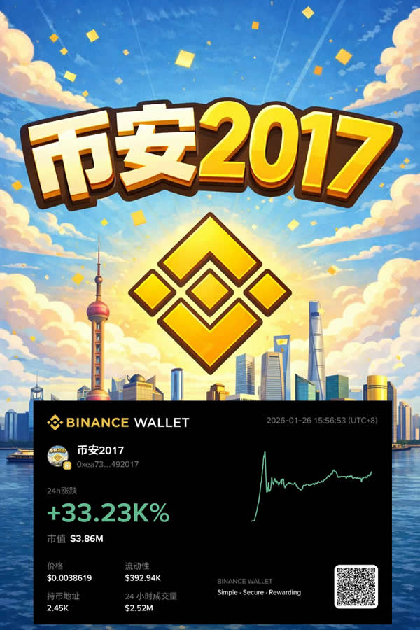 一个新创建的钱包地址在今天转入30万美元开始持续购买一个meme代币“币安2017”,目前购买仓位已幅盈50%钱包地址:0xa6f628d13d950a2e57babdf7f02d0f5c51371c05